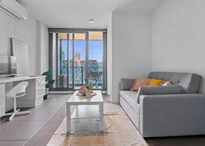 55m²のFantastic City Views 1Min Southerncross Station Skybus Free Tram メルボルンアパートはメルボルンの中心部にあり、ビクトリア州立図書館から歩いて17分の場所にあります。 ドックランズ・スタジアム少し離れたに位置するアパートで、顧客はプールを利用できます。